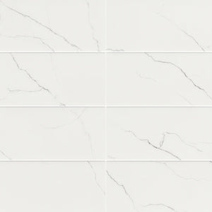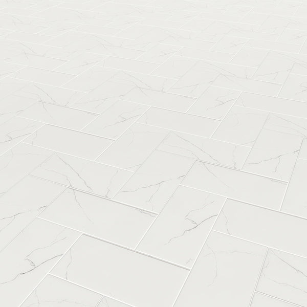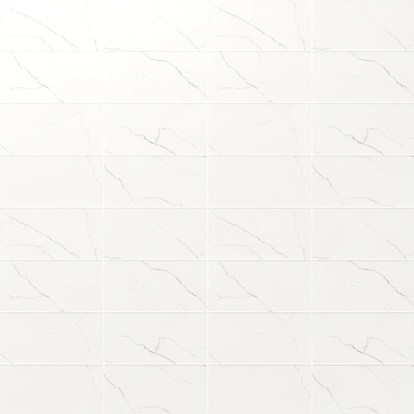 • Design: Inspired by marble with bold black veining on a soft matte white background.